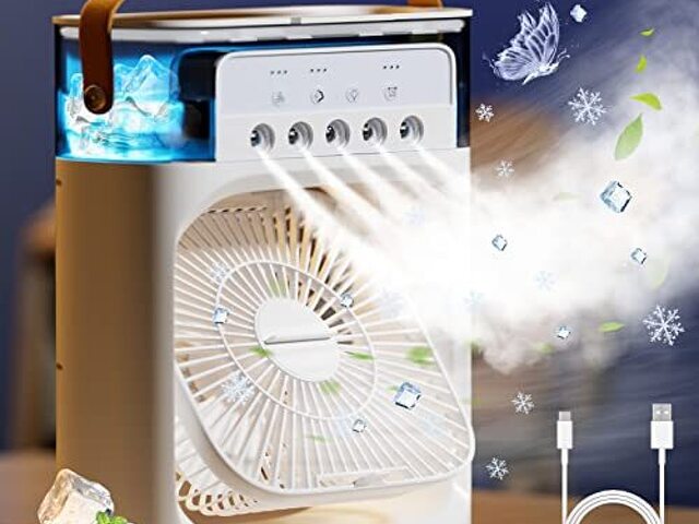 -مكيف هواء كهربائي صغير يعمل على تبريد وترطيب الهواء من حولك فقط أضف الماء أو الثلج